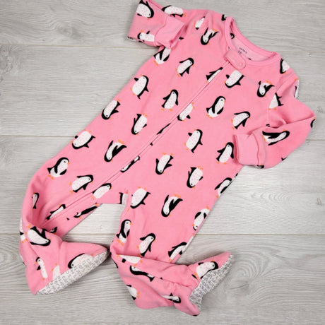 ADMX11 - Carters pink zippered fleece sleeper with penguins. Size 18 months