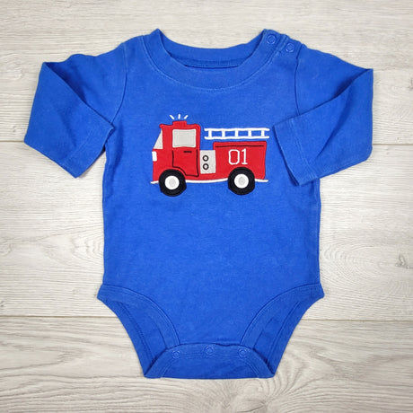KAMG3 - Carters grey cotton sleeper with fire truck. Size 9 months