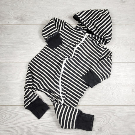 EHEM1 - Parade black striped hooded organic cotton romper. Size 12-18 months