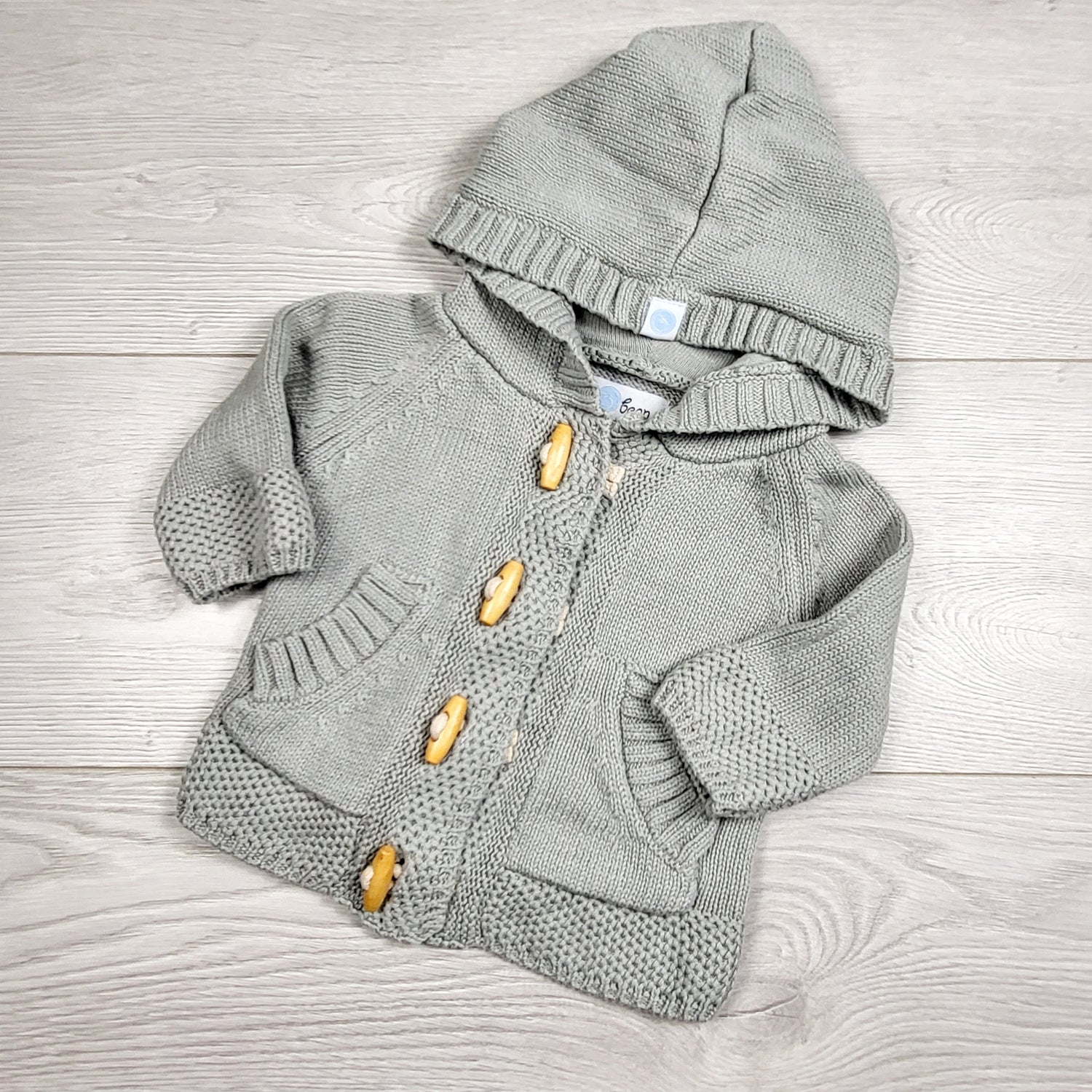 EHEM1 - Beba Bean grey hooded sweater. Size 0-3 months