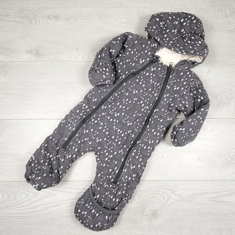 CSHR1 - Joe grey quilted cotton bunting suit with trees. Size 6-9 months