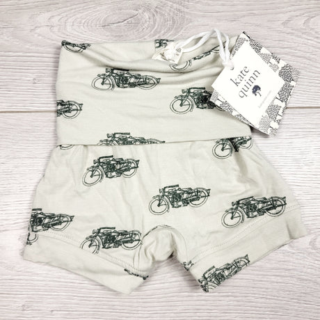 CCAM1 - NEW - Kate Quinn pale green bamboo shorts with motorcycles. Size 0-3 months