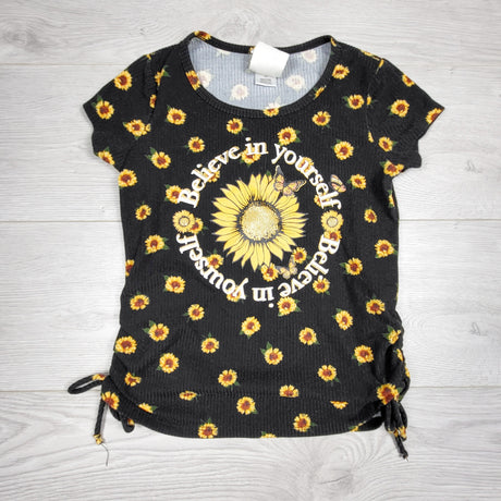 MHAN1 - Jenna and Jessie black ribbed t-shirt with sunflowers. Size 8