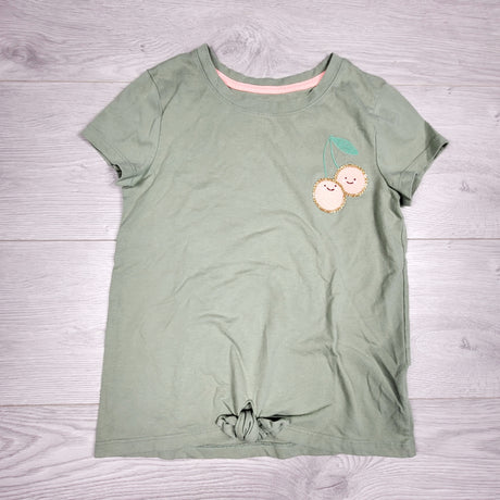 MHAN1 - Cat and Jack olive green t-shirt with cherries. Size 7/8