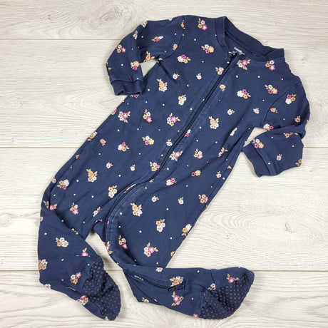 MWLL3 - George navy floral print zippered cotton sleeper. Size 6-12 months