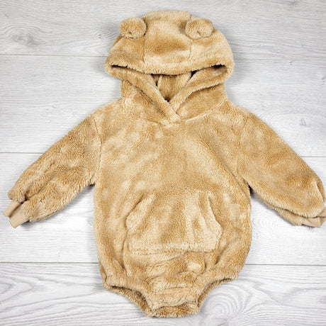 AMST3 - Old Navy tan Hooded Critter One-Piece Romper. Size 6-12 months