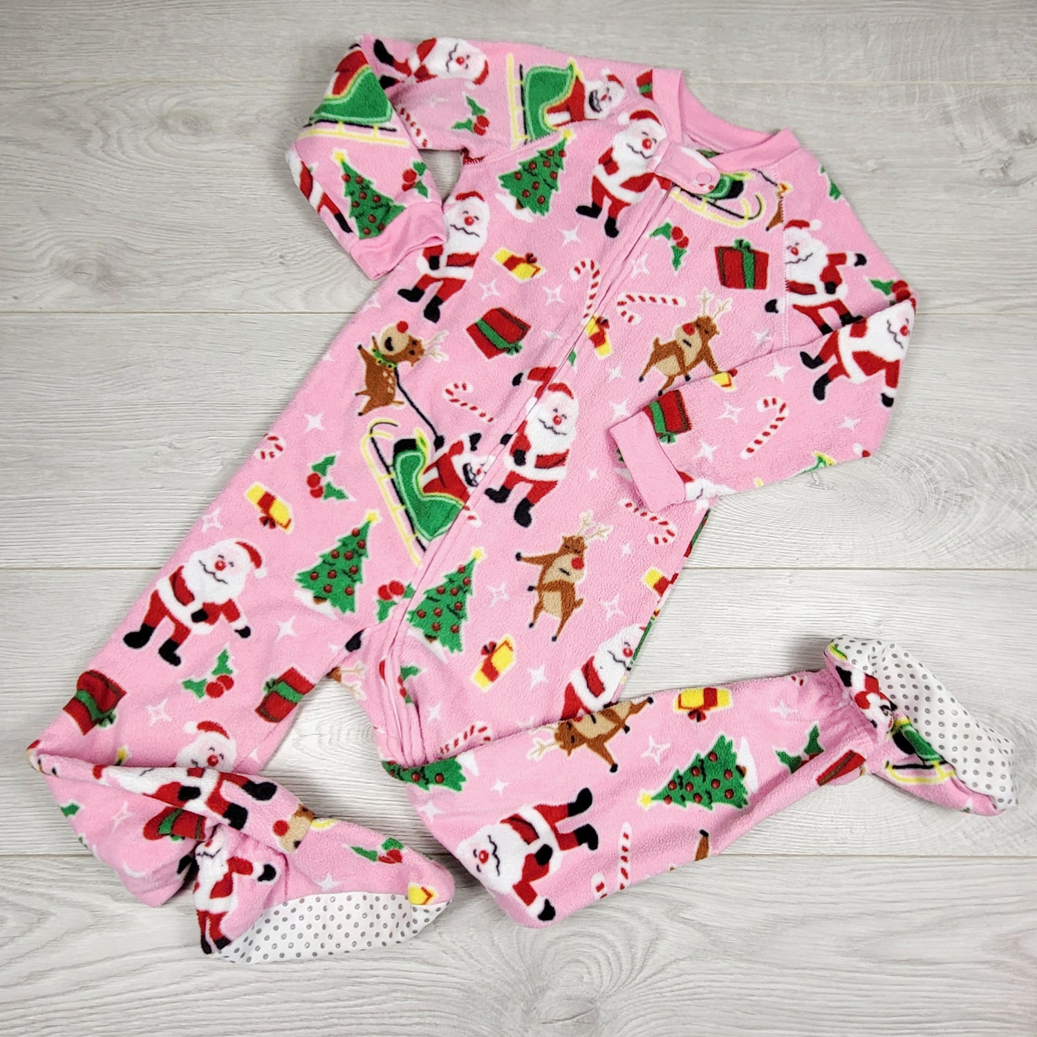 CHSP2 - Children's Place pink zippered fleece Santa sleeper. Size 4T
