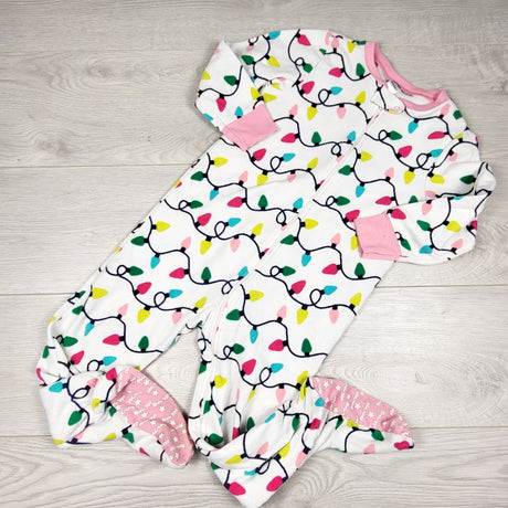 ALWE2 - Old Navy white zippered fleece sleeper with holiday lights. Size 3T