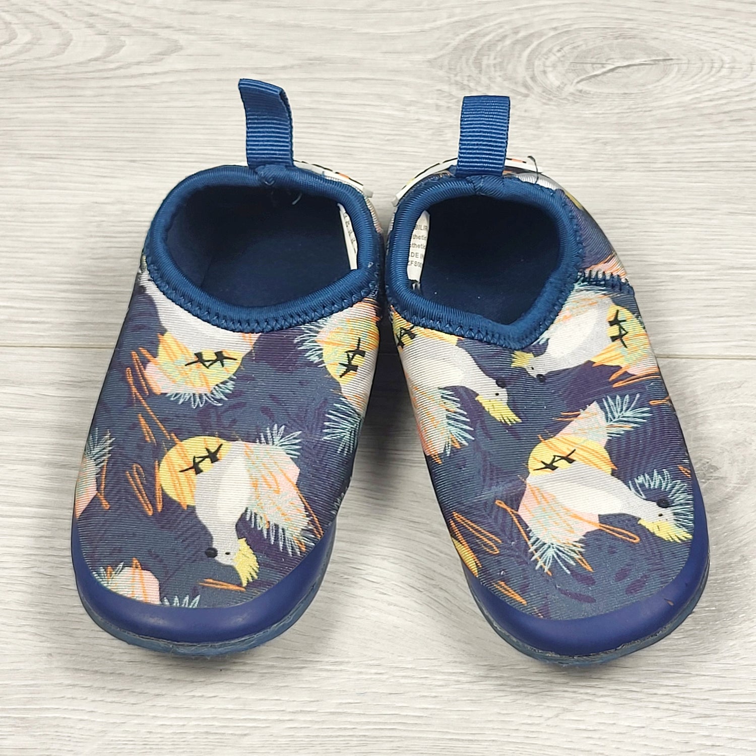 Minnow navy neoprene aqua shoes with cockatoos. Size 8
