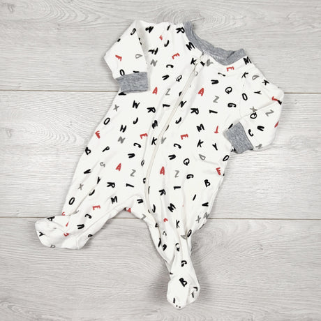 Koala Baby white zippered cotton sleeper with alphabet. Newborn size