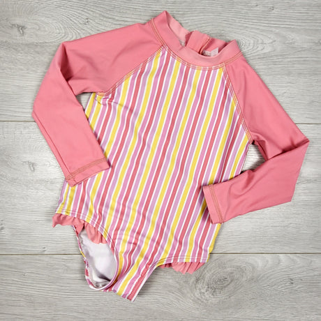 Joe Fresh pink striped long sleeve swimsuit. Size 12-18 months