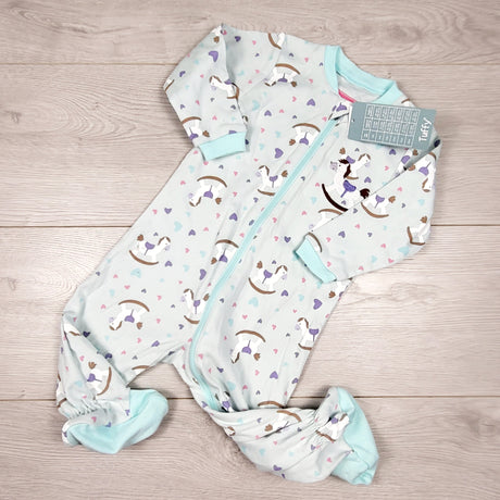 NEW - Tuffy mint zippered sleeper with rocking horses. Size 6 months