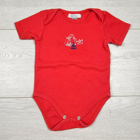 Petit Lem red bodysuit with boats. Size 9 months