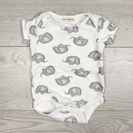 Rabbit + Bear white elephant bodysuit. Size 3-6 months