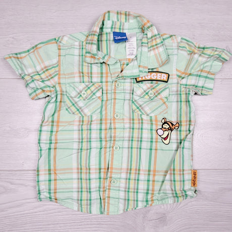 Disney green plaid button down shirt with Tigger. Size 3T