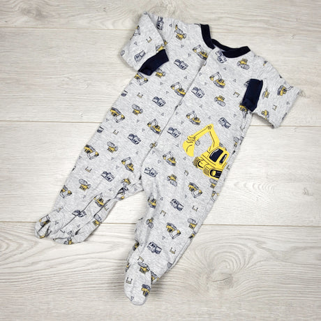 KRML1 - Child of Mine grey cotton sleeper with diggers. Size 3-6 months