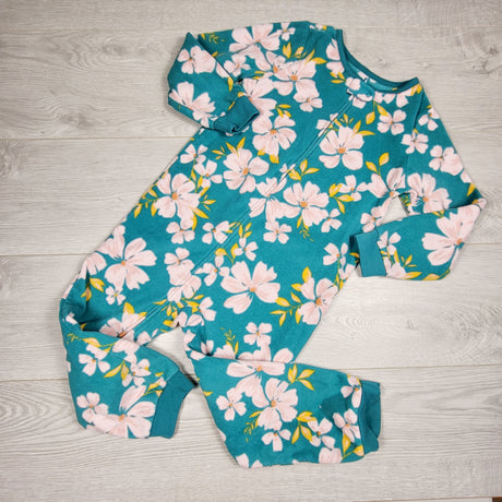 MHAN1 - Carters teal floral print zippered fleece sleeper. Size 5T
