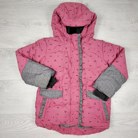 ESZ1 - Peekaboo Beans pink patterned sherpa lined hooded winter coat. Size 6 🍁