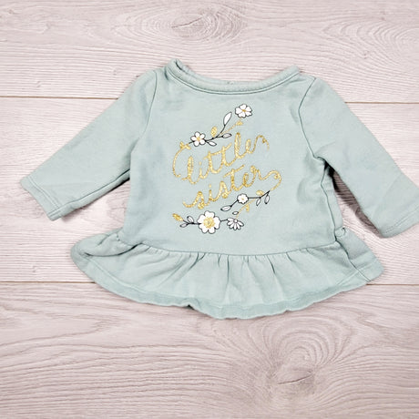 MASO22 - Child of Mine aqua coloured fleece lined "Little Sister" sweashirt. Size 0-3 months