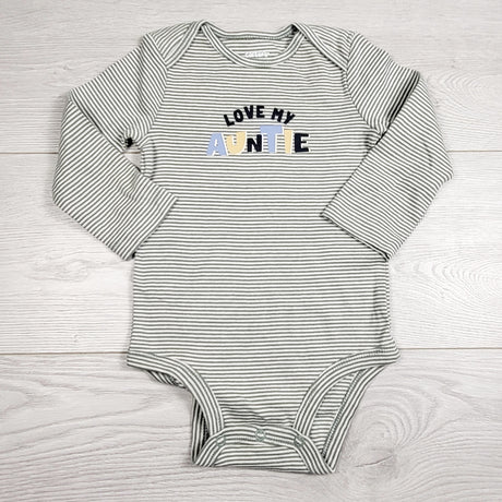 EHEM1 - Carters green striped "Love My Auntie" bodysuit. Size 12 months