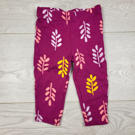 JGIB1 - Carters dark pink leaf printed leggings. Size 6 months