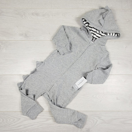 KAMG2 - NEW - Carters grey hooded romper with scales. Size 12 months