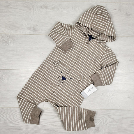 KAMG2 - NEW - Carters brown striped hooded bear romper. Size 12 months