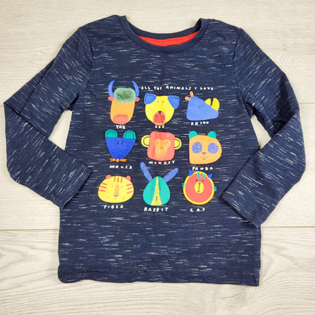 VIBU1 - Tu heathered navy long sleeved top with animals. Size 2/3T