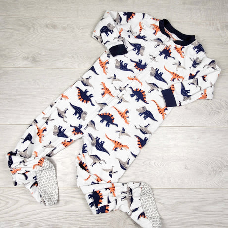 JLSN1 - Carters white zippered fleece sleeper with dinosaurs. Size 3T