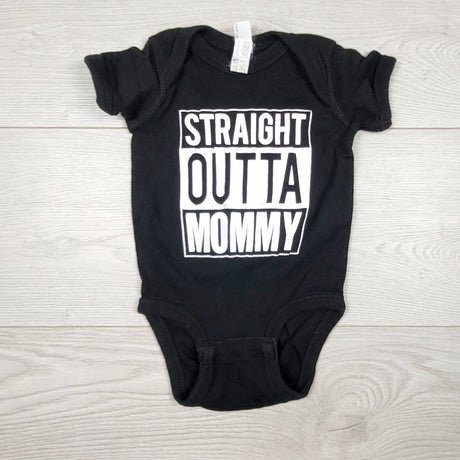 MASO2 - Black "Straight Outta Mommy" bodysuit. Size 6 months