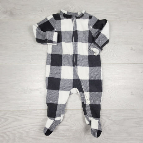 CHSP22 - Old Navy black buffalo plaid zippered fleece sleeper. Size 0-3 months