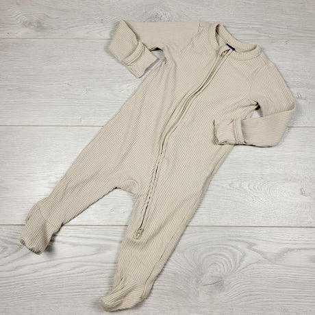 KLJ1 - Old Navy beige ribbed zippered cotton sleeper. Size 3-6 months