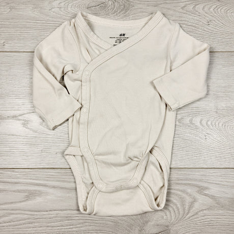 RBEN1 - H and M beige organic cotton wrap style bodysuit. Size 1-2 months