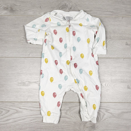 ECRS11 - H and M white zippered cotton sleeper with balloons. Size 2-4 months