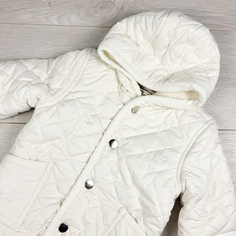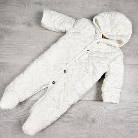 KLJ2 - Leveret white fleece lined quilted bunting suit. Size 6 months