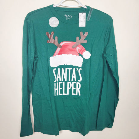 MAWA1 - NEW - Children's Place green "Santa's Helper" long sleeved top. Size 16