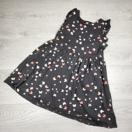 H anM dark grey organic cotton dress with butterflies. Size 8-10 Years