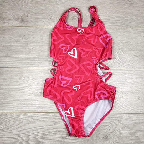 Pink cut-out style one piece swimsuit with hearts. Size 13/14