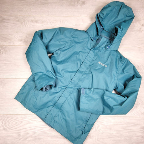 Mountain Warehouse teal zippered hooded waterproof coat with zip out fleece lining. Size 9/10
