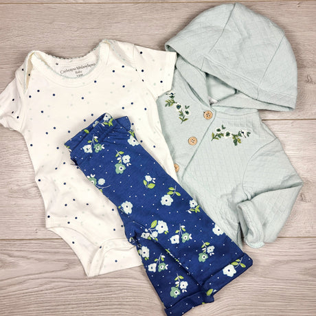 Catherine Malandrino blue floral print 3pc set. Size 3-6 months