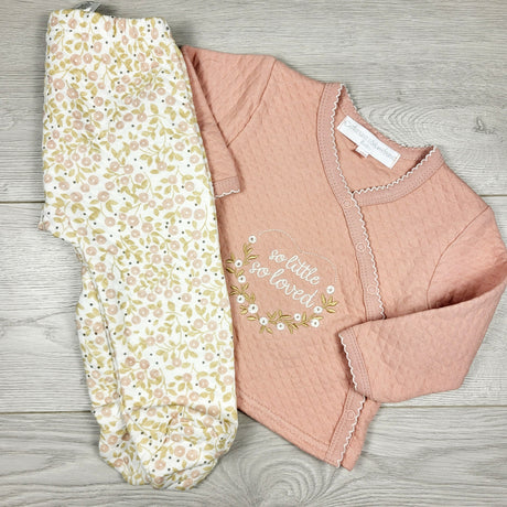 Catherine Malandrino pink 2pc quilted set with flowers. Size 6-9 months