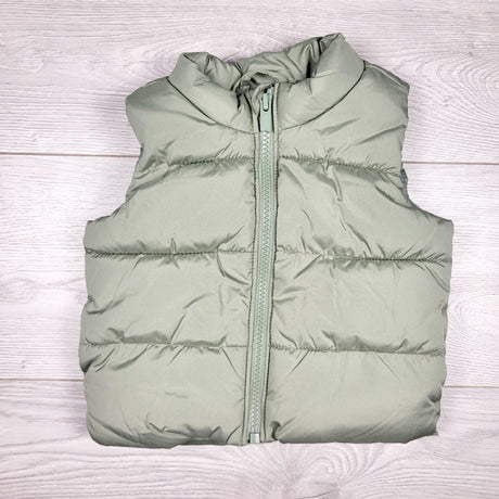 Old Navy sage green water resistant puffer vest. Size 3-6 months