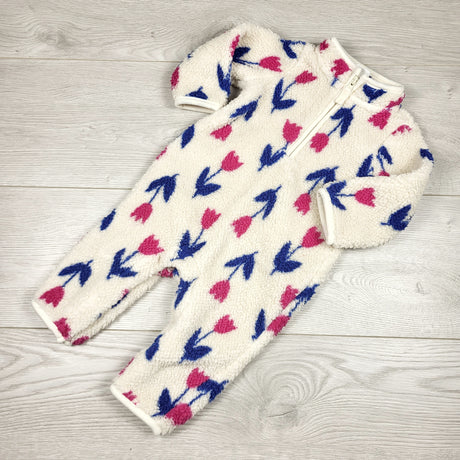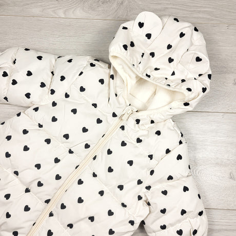 Old Navy white fleece lined snowsuit with hearts. Size 3-6 months