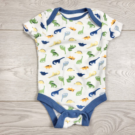 RXC1 - Baby Gear white and blue dinosaur bodysuit. Size 0-3 months