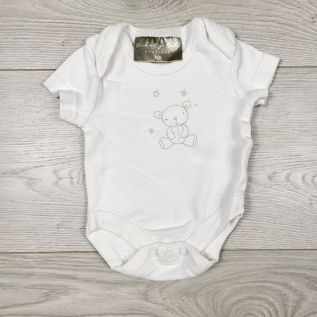VIBU33 - Rock a Bye Baby white bodysuit with bear. Newborn size