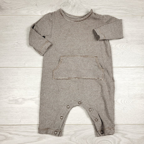 CCAM1 - Little Planet brown striped cotton romper. Size 3 months
