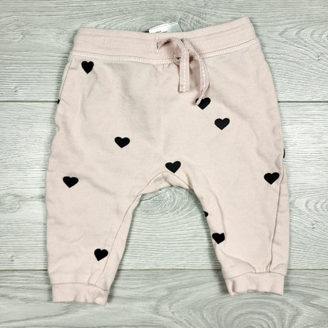 CCAM1 - H and M pink organic cotton joggers with hearts. Size 2-4 months