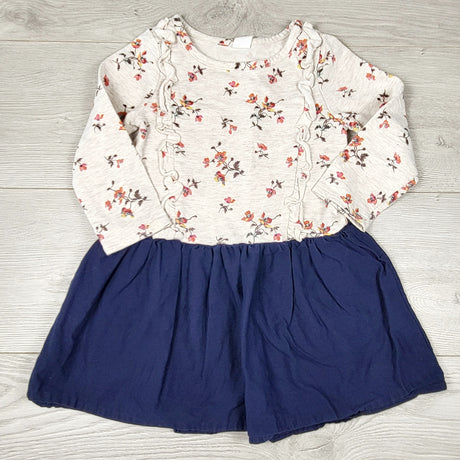 KCHV1- Oshkosh navy floral print fleece lined hooded rain coat. Size 24 months