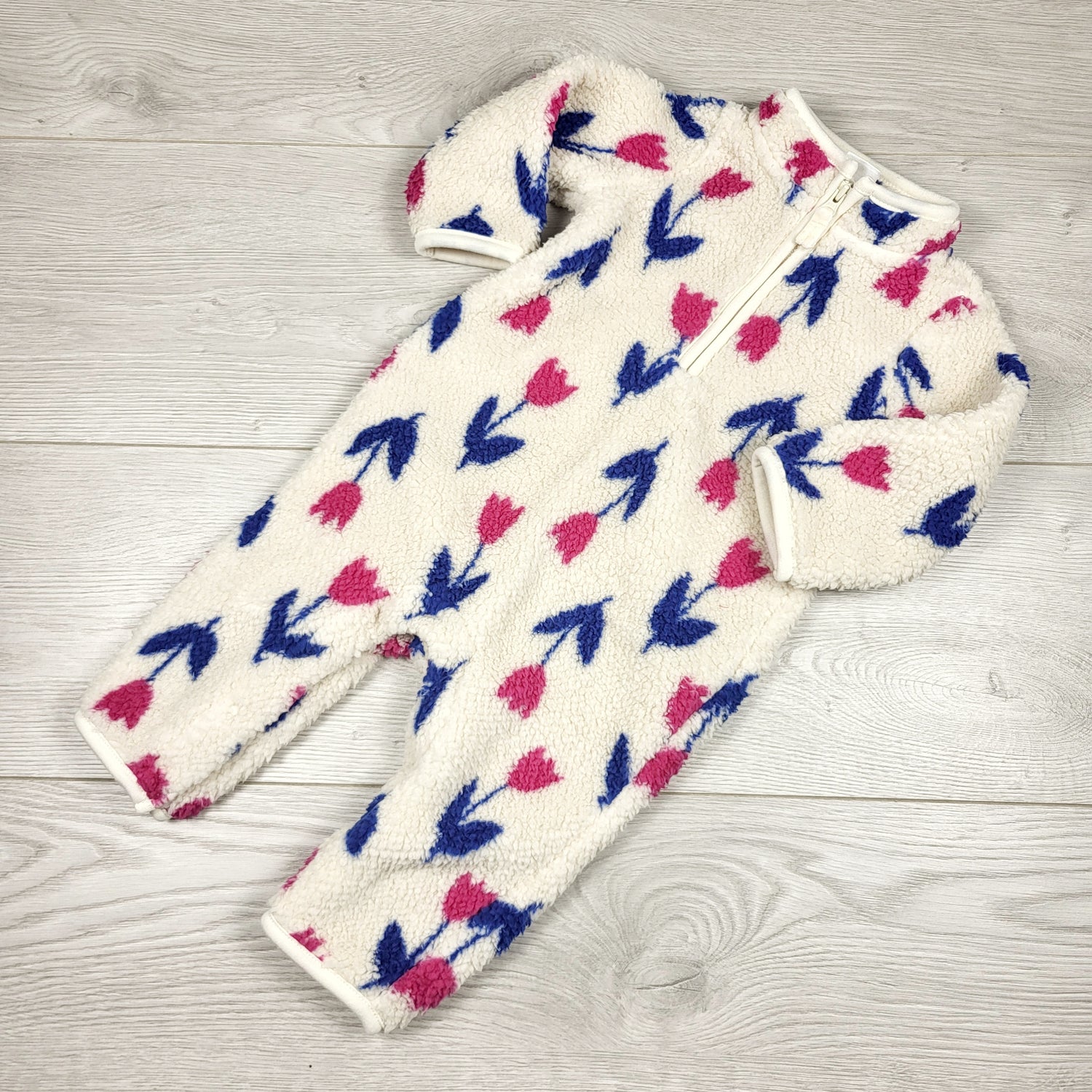 Carters sherpa jumpsuit with tulips. Size 6 months