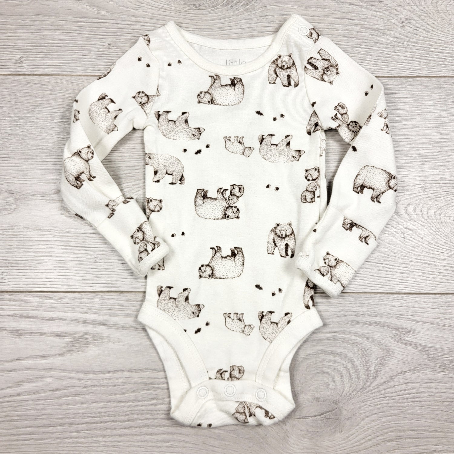 CCAM1 - Little Planet white long sleeved bear bodysuit. Newborn size